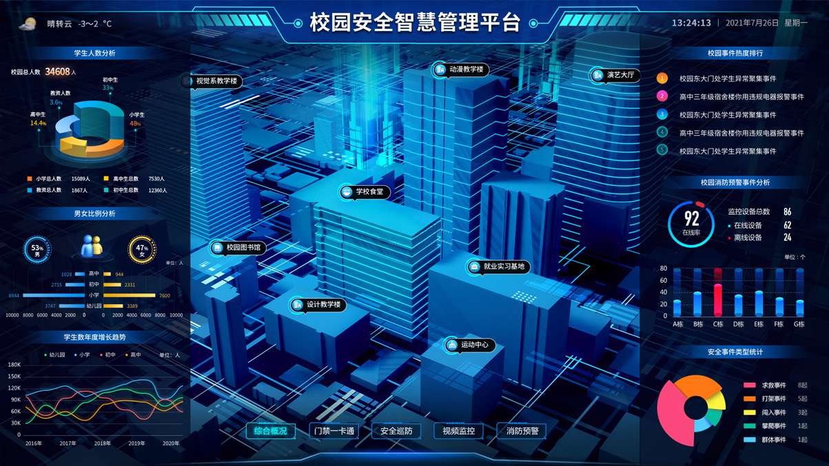 全方位立體式還原院區(qū)實(shí)貌,分圖層對(duì)院區(qū)的區(qū)域、建筑、單位、安防設(shè)備、管理設(shè)備、警情等進(jìn)行查看、監(jiān)控和跟蹤;通過(guò)院區(qū)各類安防管理設(shè)備實(shí)時(shí)獲取各重點(diǎn)監(jiān)控區(qū)域的監(jiān)控?cái)?shù)據(jù),對(duì)各種突發(fā)事件進(jìn)行報(bào)警。通過(guò)人臉識(shí)別、車牌識(shí)別、行為識(shí)別、武器管理、營(yíng)區(qū)設(shè)備等各類傳感器,對(duì)人、車、物及其行為的全面感知,保障營(yíng)區(qū)安全。 -